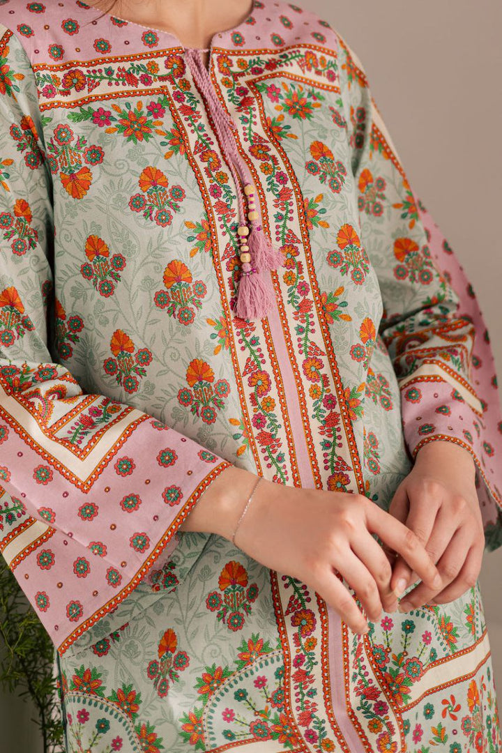Radiate charm in this Luxe Floral Co-Ord Set, featuring a refreshing mint green base adorned with vibrant floral prints 🌸 and delicate rose-pink accents. The kurta’s tassel tie-up neckline and printed borders bring a touch of traditional artistry, while the wide-leg trousers add effortless grace. Perfect for brunches ☀️, festive gatherings 🎉, or casual chic evenings 🌙, this co-ord is your go-to for style and comfort in one.
