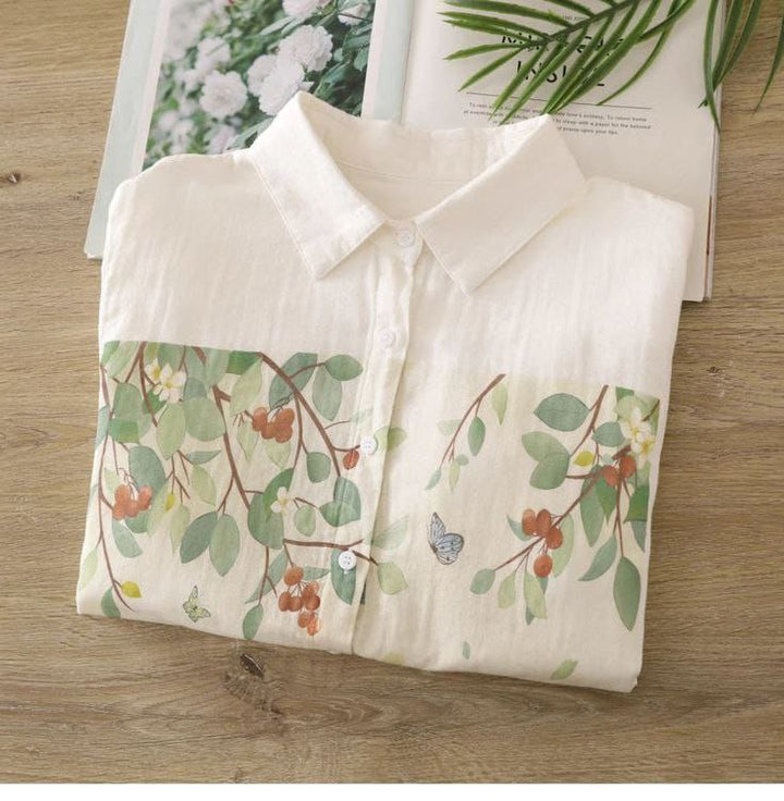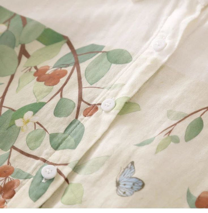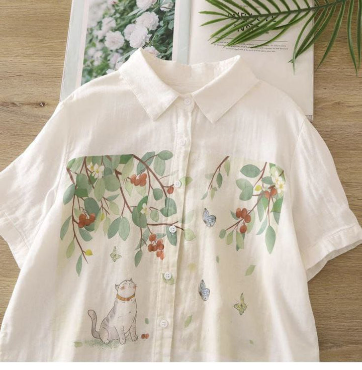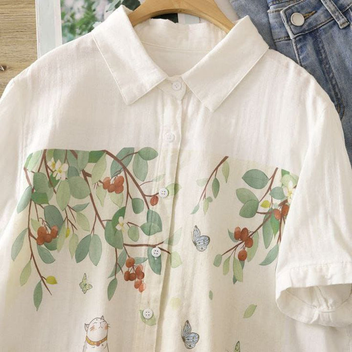 Nature-Inspired Cat & Butterfly Print Linen Shirt ๐ฑ๐ฆ๐ฟ
