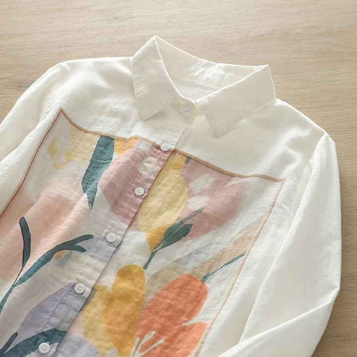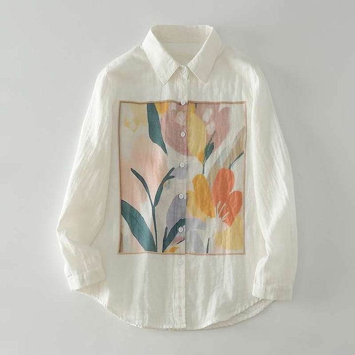 🌼 Women’s White Cotton Shirt with Pastel Floral Print 🌸✨