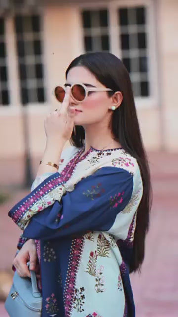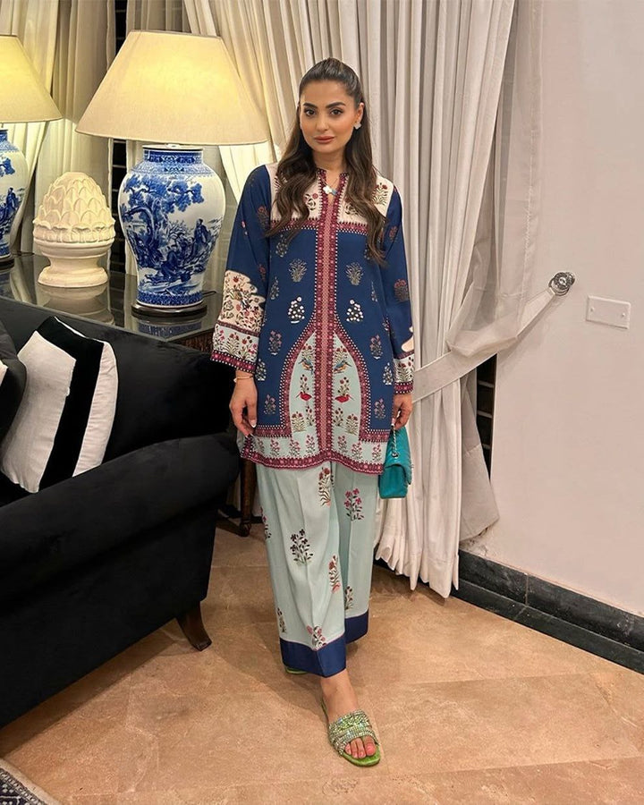 Upgrade your wardrobe with our Sapphire Bloom Printed Co-ord Set, designed for women who love comfort with a touch of class. This two-piece set features a navy blue kurta adorned with delicate floral motifs and chic borders, paired with pastel trousers sprinkled with matching prints.