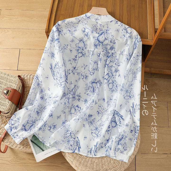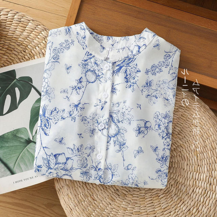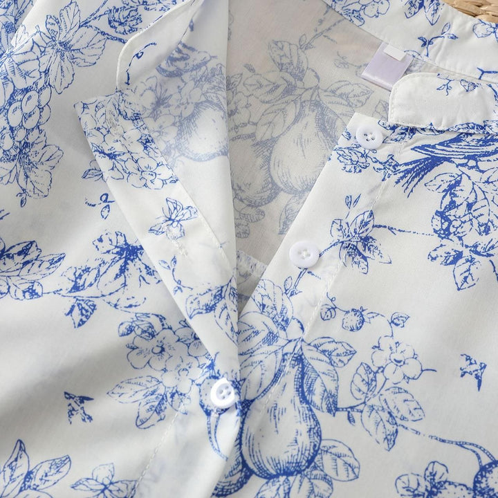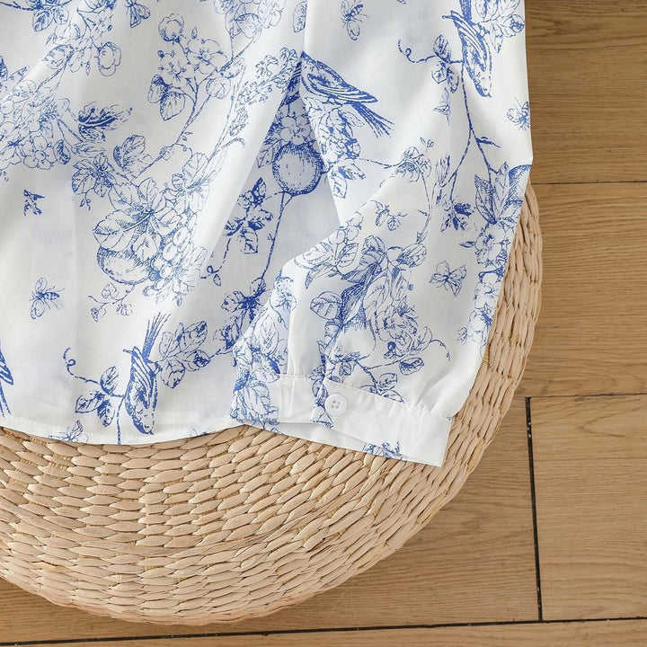 Blue & White Floral Print Rayon Shirt ๐ธ๐