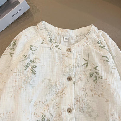 Soft Beige Floral Cotton Button-Down Shirt ๐ฟ๐ธ
